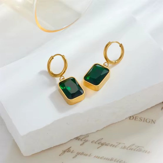 Emerald Envy Stainless Steel Gold Plated Hoop Earrings