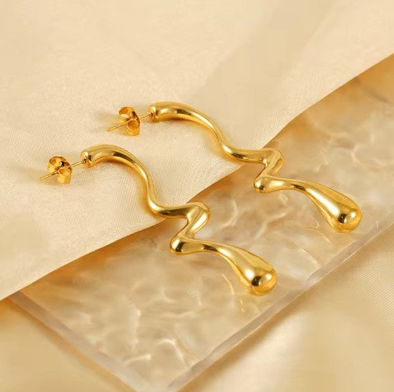 Stainless Steel Gold Plated Tarnish-Free Irregular Water Drop Ear Stud