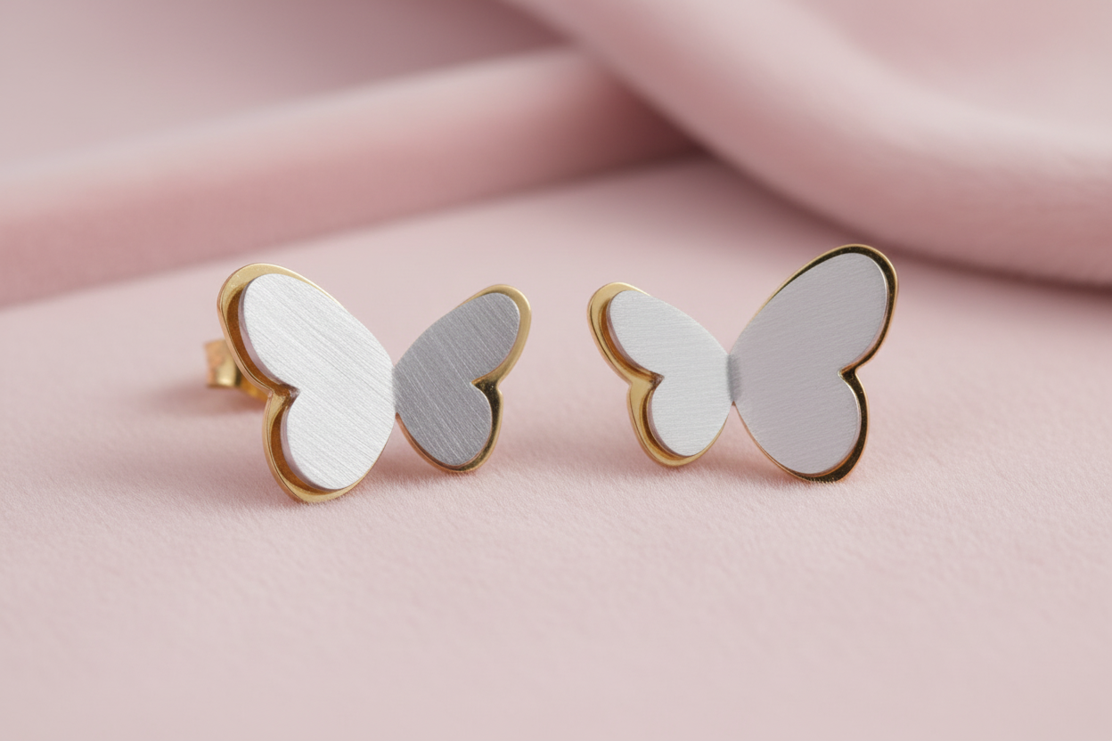 Stainless Steel Gold-toned Dainty Grey Butterfly Stud Earring